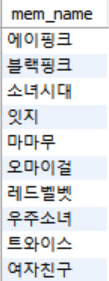 mem_name 행만 추출하면 다음과 같은 결과가 나온다.