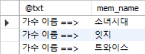 SET @txt = '가수 이름 ==> ';