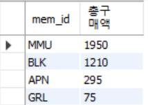 SELECT mem_id, SUM(price*amount)"총구매액"