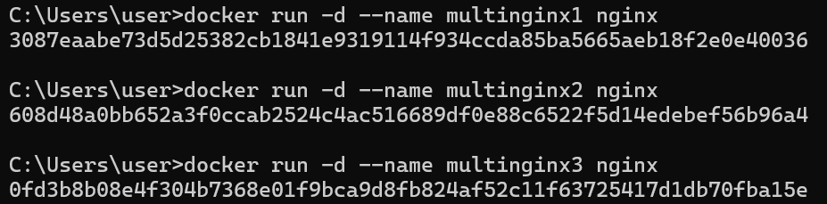 nginx 이미지로 이름이 multinginx1, multinginx2, multinginx3 컨테이너를